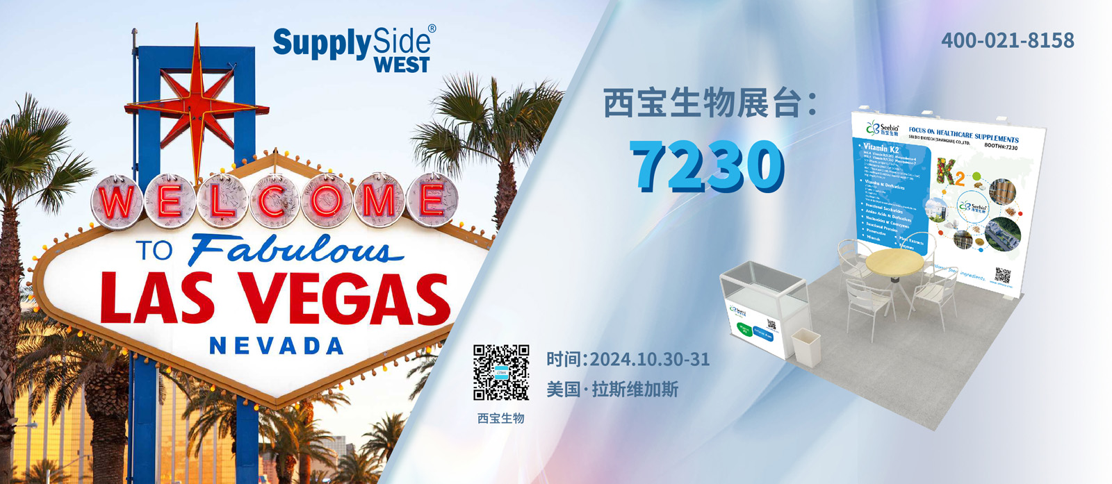 2024年10月30-31日,SupplySideWest美國(guó)天然、健康和創(chuàng)新原料展覽會(huì)將在美國(guó)拉斯維加斯的曼德勒海灣會(huì)議中心盛大舉行。西寶生物誠(chéng)邀您或您的海外合作伙伴蒞臨西寶生物現(xiàn)場(chǎng)展位7230,不遠(yuǎn)萬(wàn)里奔向你。