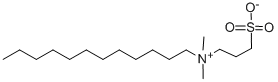 3-磺丙基十二烷基二甲甜菜堿(SDDAB),是一種兩性離子表面活性劑。用于蛋白質溶解的兩性離子去污劑。已用于評估離子型和兩性離子表面活性劑混合系統(tǒng)中蛋白質結構變化的研究。它還被用于研究離子液體和兩性離子表面活性劑之間的相互作用。