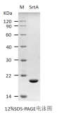 本品為Sortase A(SrtA)的突變體,特異性識別LPXTG基序(X為任意氨基酸),切割蘇氨酸(T)和甘氨酸(G)之間的肽鍵,然后將切割后的蛋白羧基端與多聚甘氨酸(通常為GGGGG)受體橋連,完成錨定?;钚暂^野生型有顯著提升。