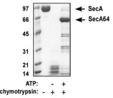 ATP添加下糜蛋白酶對SecA的不完全酶切