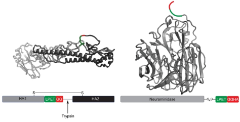 圖: Structural representation of sortase cleavage site mutations in hemagglutinin and neuraminidase