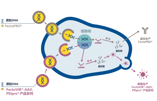 在各階段的病毒載體生產(chǎn)過程中,均可提供相應(yīng)質(zhì)量級別的PEIpro®轉(zhuǎn)染試劑