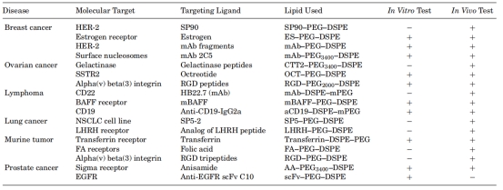 針對(duì)一些靶點(diǎn)被證明有效的PEG-Lipid體[7]: