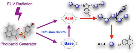 光酸的擴散長度直接決定了光刻膠的性能及一些重要參數(shù),如曝光能量、能量窗口、邊緣粗糙度、圖形形貌以及掩模版誤差增強因子等。