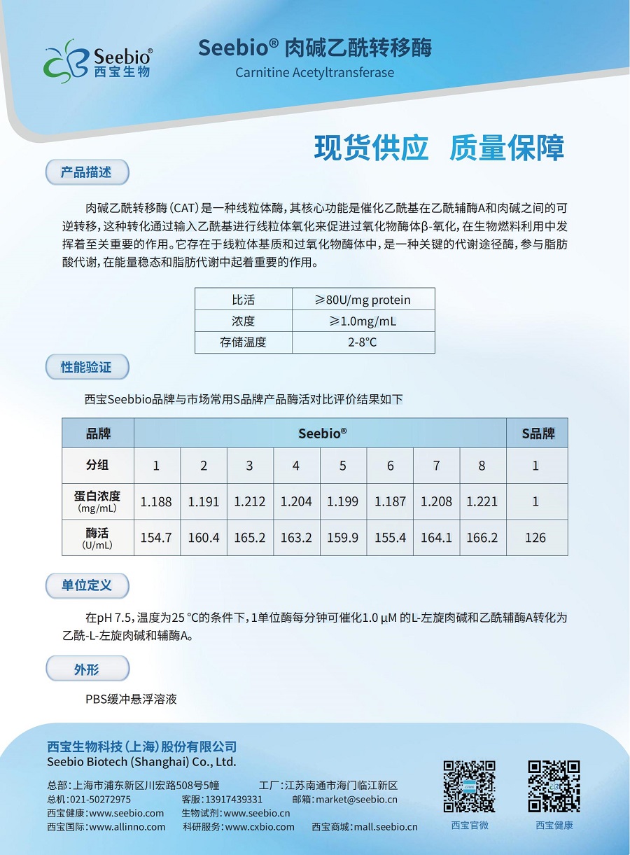 肉堿乙酰轉(zhuǎn)移酶(CAT)是一種線粒體酶,其核心功能是催化乙酰基在乙酰輔酶A和肉堿之間的可逆轉(zhuǎn)移,這種轉(zhuǎn)化通過輸入乙?;M(jìn)行線粒體氧化來促進(jìn)過氧化物酶體β-氧化,在生物燃料利用中發(fā)揮著至關(guān)重要的作用。它存在于線粒體基質(zhì)和過氧化物酶體中,是一種關(guān)鍵的代謝途徑酶,參與脂肪酸代謝,在能量穩(wěn)態(tài)和脂肪代謝中起著重要的作用。