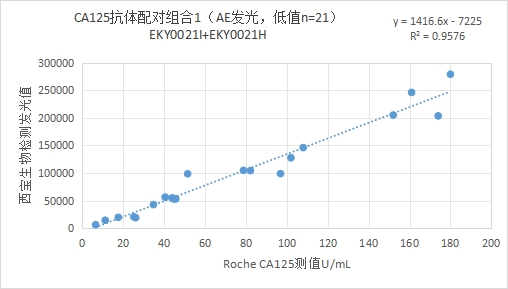 抗體配對(duì)組合1:CA125抗體(貨號(hào):EKY0021I)包被羧基磁珠+CA125抗體(貨號(hào):EKY0021H)標(biāo)記吖啶酯;