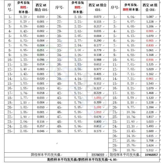 表1 西寶生物AE組合測試結(jié)果