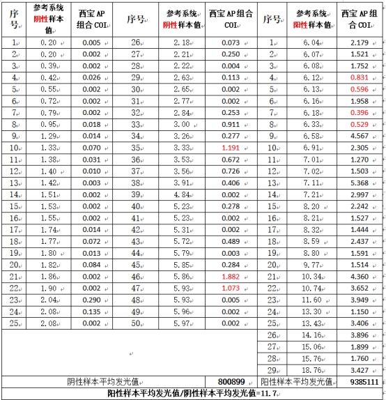 表2 西寶生物AP組合測試結(jié)果