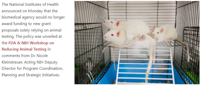 今年七月,美國(guó)國(guó)立衛(wèi)生研究院(NIH)在與美國(guó)食品藥品監(jiān)督管理局(FDA)聯(lián)合舉辦的研討會(huì)上宣布了一項(xiàng)歷史性決策:不再資助僅依賴動(dòng)物試驗(yàn)的新研究項(xiàng)目,所有新的NIH資助機(jī)會(huì)都應(yīng)納入新方法的考量。這一決策標(biāo)志著跨越近一個(gè)世紀(jì)的動(dòng)物試驗(yàn)主導(dǎo)時(shí)代迎來終結(jié)。