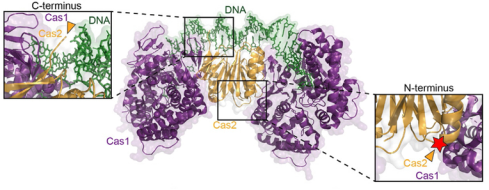 圖:N-terminal sortase labeling of Cas1-Cas2. Structure of Cas1-Cas2 complexed with DNA