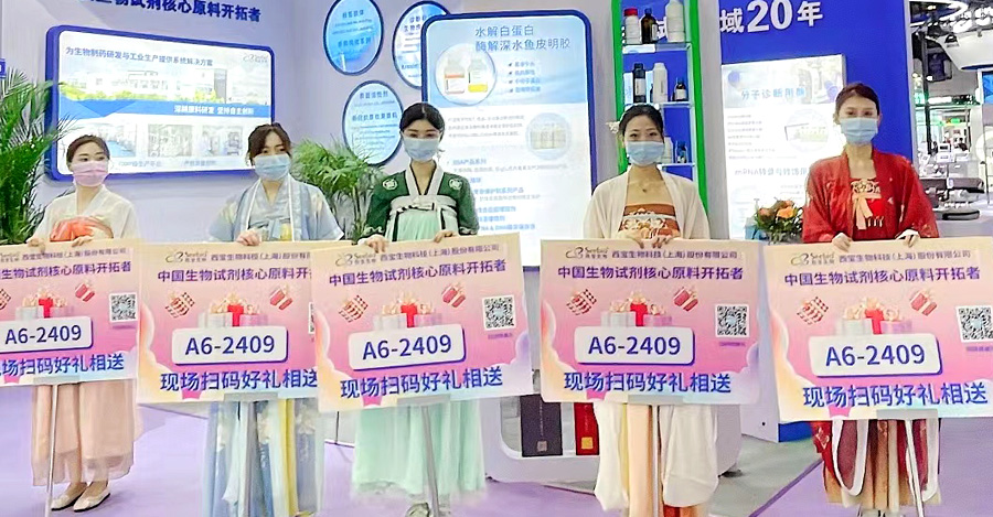 西寶生物自主研發(fā)的優(yōu)質(zhì)核心原料產(chǎn)品,廣泛應用于體外診斷(生化、酶免/發(fā)光、分子診斷、膠體金層析、熒光層析等平臺)、生物制藥、疫苗研發(fā)生產(chǎn)及科研領域。此次展會,西寶生物重點展示了水解白蛋白、酶解深水皮魚明膠和分子酶系列等新品,引起了客戶的濃厚興趣。
