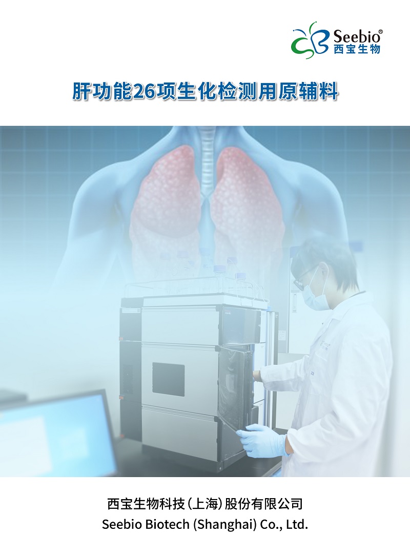 西寶生物提供 肝功能26項生化檢測用原輔料,包括:總蛋白(TP),白蛋白(ALB)、血氨(BA)、前白蛋白(PAB)、銅藍蛋白(CER)、總膽紅素(TB)、直接膽紅素(DB)、總膽汁酸(TBA)、甘膽酸(CG)、谷丙轉氨酶(ALT)、谷草轉氨酶(AST/GOT)、γ-谷氨酰轉移酶(γ-GT)、堿性磷酸酶(ALP/AKP)、膽堿酯酶(CHE)、單胺氧化酶(MAO)、5'-核苷酸酶(5'- NT)、α-L-巖藻糖苷酶(AFU)、腺苷脫氨酶(ADA)、亮氨酰氨基肽酶(LAP)、谷胱甘肽還原酶(GR)、谷氨酸脫氫酶(GLDH/GDH)、乳酸脫氫酶(LD/LDH)、總膽固醇(TC)、甘油三酯(TG)、高密度脂蛋白膽固醇(HDL-C)、低密度脂蛋白膽固醇(LDL-C)等項目檢測試劑盒用原輔料。咨詢訂購熱線:400-021-8158 或 021-50272975。